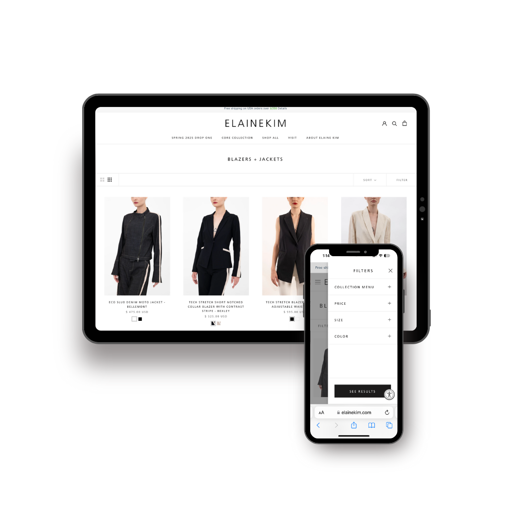 Integrated smart filters to help shoppers search by category, fit, or collection