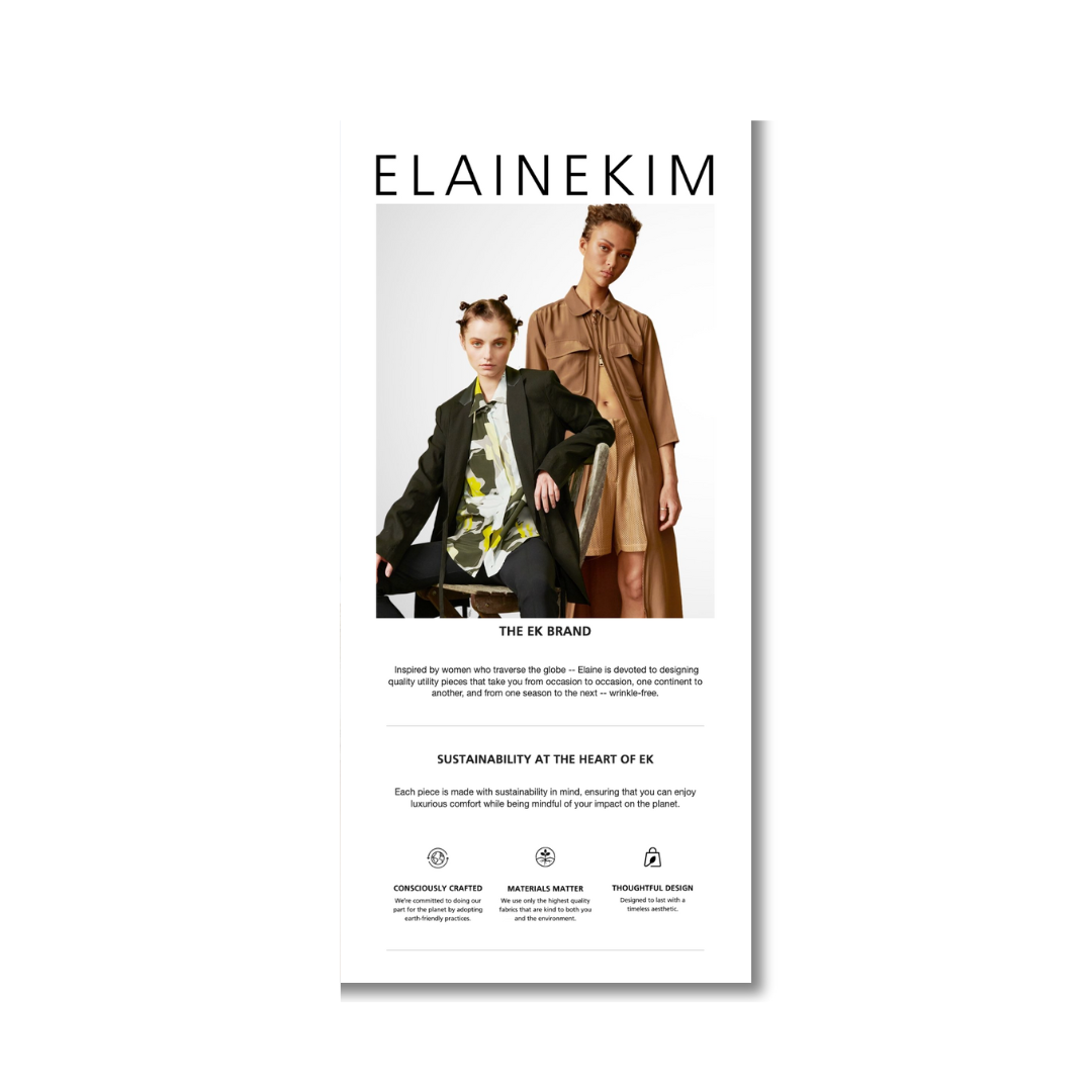 Elaine Kim’s brand was deeply loved by fashion insiders, but her digital presence didn’t fully reflect her design philosophy, sustainability values, or sophisticated lifestyle approach.